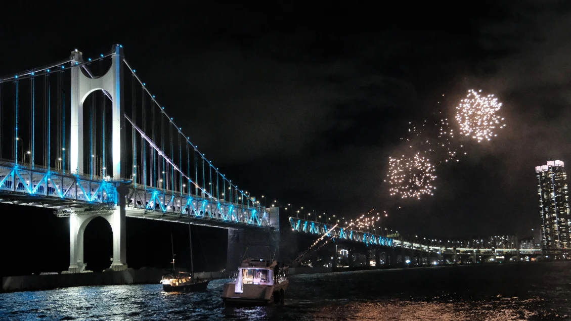 最浪漫的觀秀方式,絕對是搭乘週六晚上的Yacht Holic、Yacht G……等釜山pass有免費提供遊艇體驗項目的船家,選對時段的話,夜晚可以看到船家自己放的煙火,還可以觀看廣安里無人機燈光秀,達到多重享受!