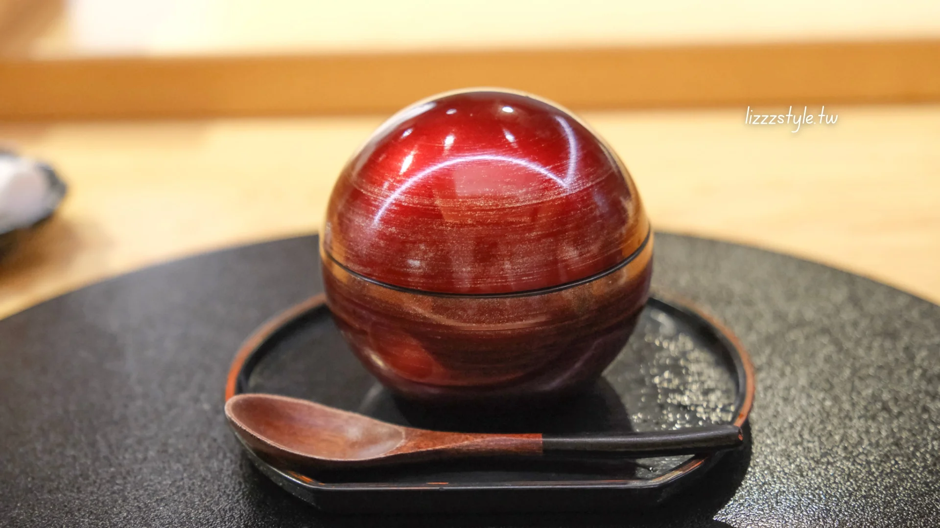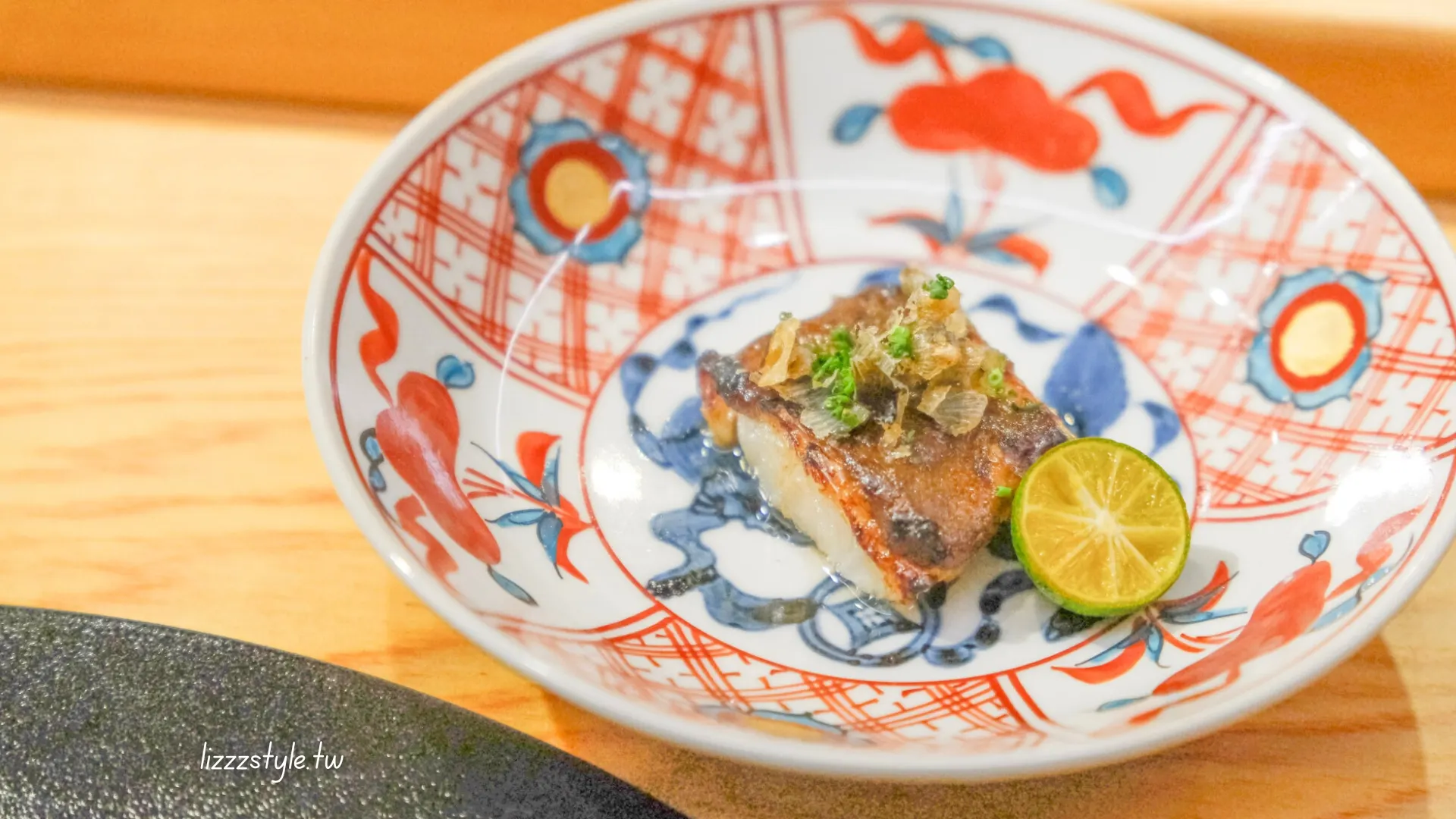 來自北海道的八角魚相當令人驚豔。八角魚的柚庵燒上層細碎的魚皮處理得好像炸過一樣,帶著誘人的酥脆感,可底下的魚肉卻保持了令人驚豔的細嫩、細緻與鮮甜,魚肉的風味十分特別,帶有一點接近鰻魚的甘美滋味,但質地又比鰻魚更為細膩、不那麼緊密。
