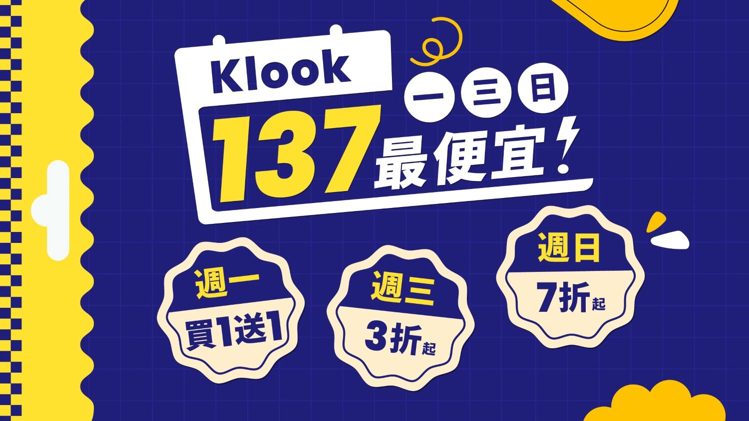 今年klook推出的一、三、七活動,活動每一週的禮拜一、三、日優惠內容皆不固定,活動都在前一晚更新。