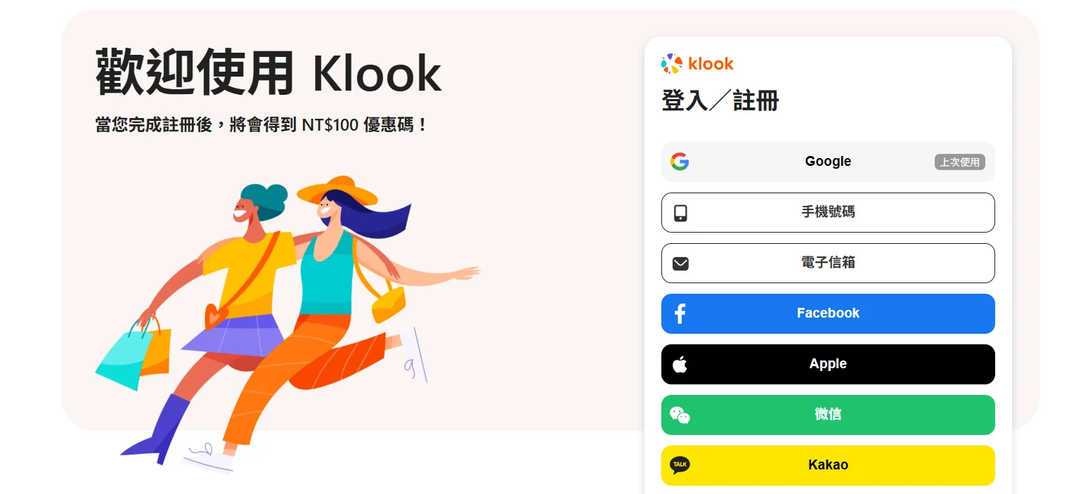 新用戶目前只要註冊klook,就可以領取$100的優惠碼,現在點入下方指定連結馬上加入吧!