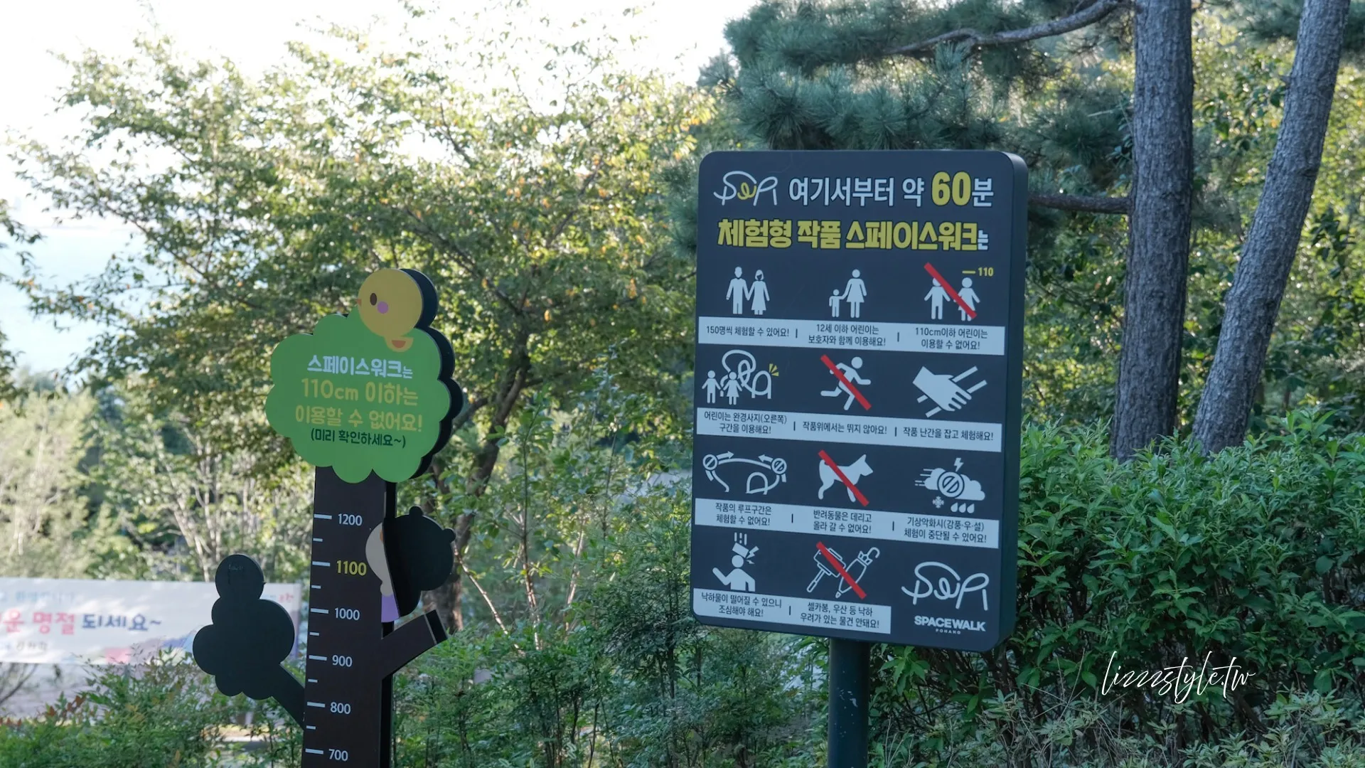 ▲進入步道之前,可以看到現場都有相關告示牌,說明至少要身高滿110公分才可以體驗,而且12歲以下需要由成人陪同(手要牽好)!